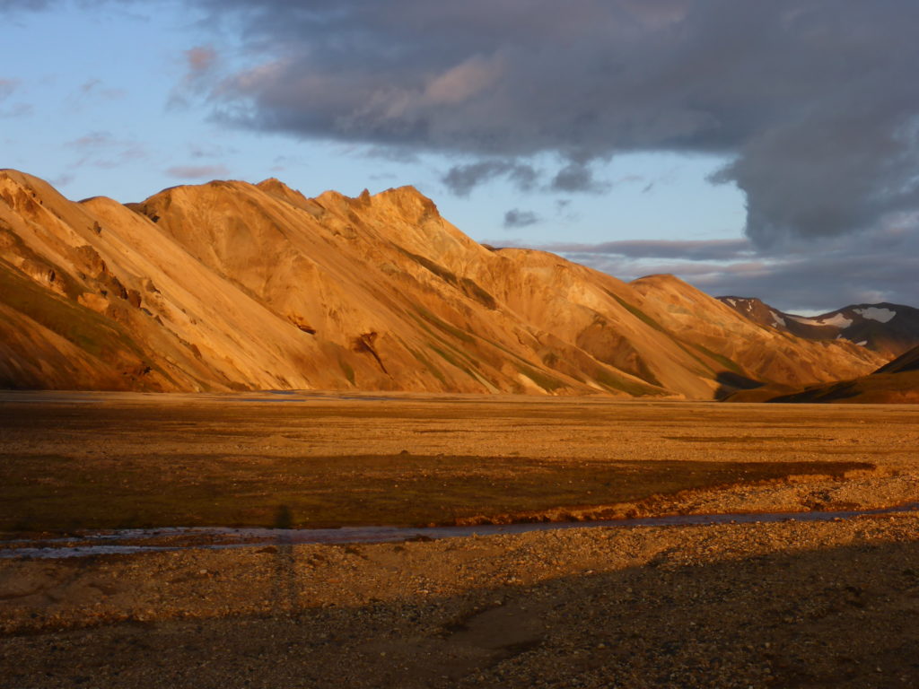 Arrenco el primer dia cap a Laugafell: a més de 80 kms i he de superar 1000 d+. Començo amb una carretera asfaltada que em condueix cap a una vall perduda en la qual només coincideixo amb un cotxe. La pista molt precària remunta al costat d’un riu que és alimentat per successius rius que baixen de les dues pendents que defineixen la vall. Lloc inhòspit i meravellós a la vegada.